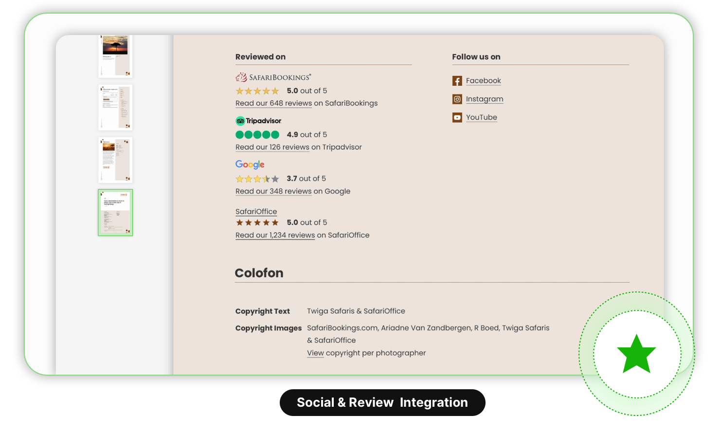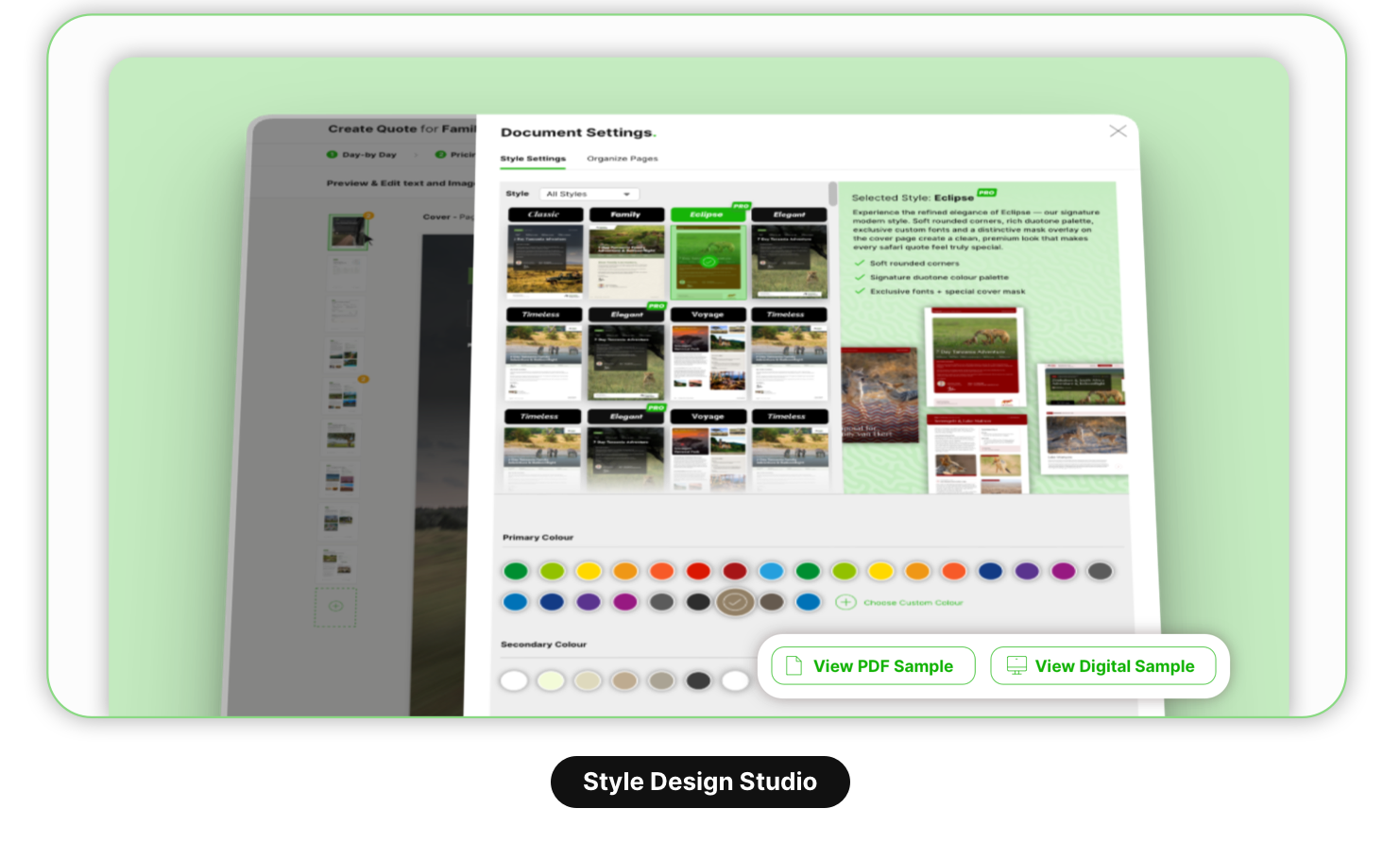 Based on the itinerary you create, the design style you choose and the content from our database, SafariOffice will create a professional quote for you. Which you can still fully customize to your liking.