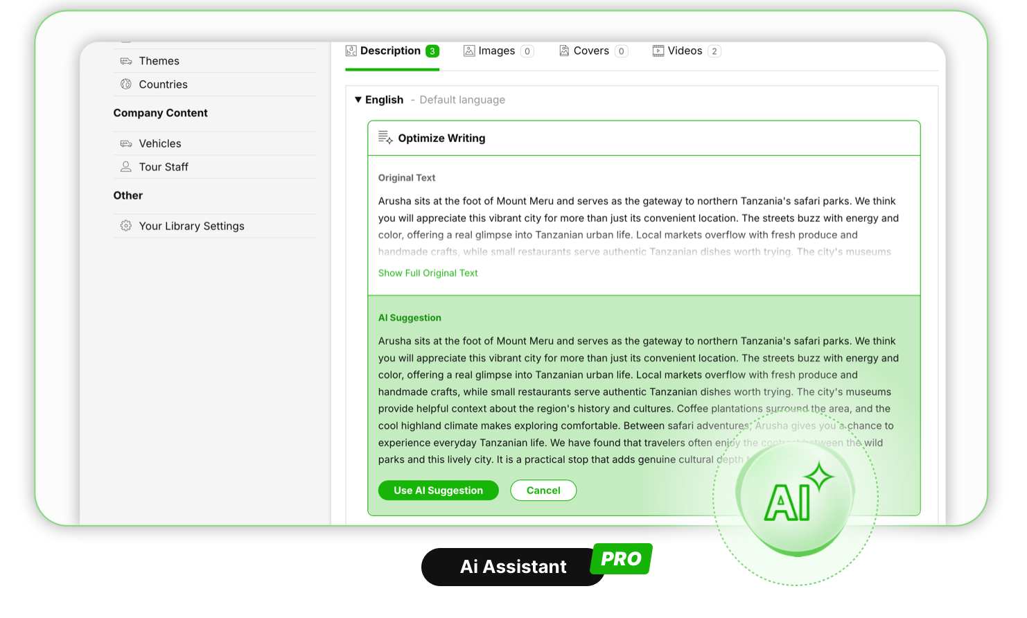 Destination, POI, Activity and Accommodations descriptions – More Hide info