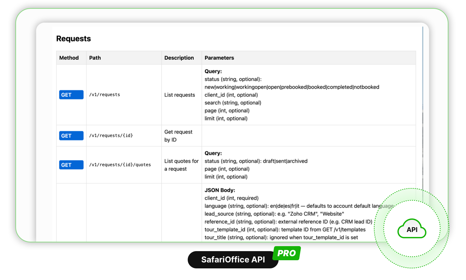 If you have a SafariBookings account you can automatically receive requests (no need to enter client or tour data again). You can also import the tours you have published on SafariBookings, and SafariOffice will create quote templates ready for you to use.